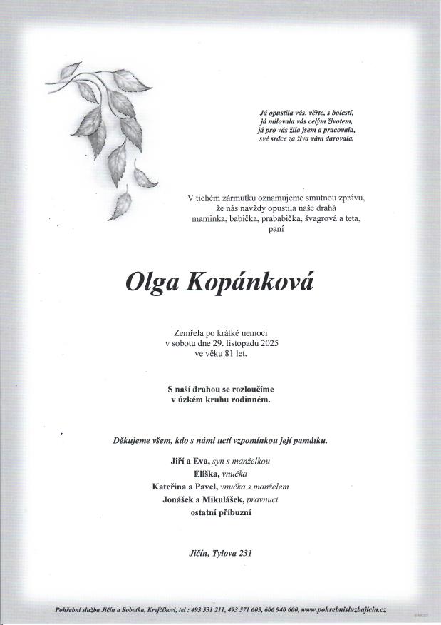 Pohřební služba Krejčíkovi Jičín a Sobotka